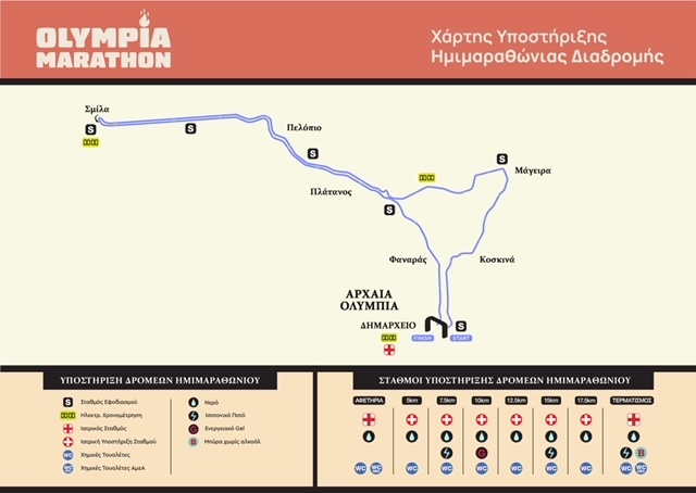 - Ανά 2,5 χλμ. θα διατίθεται πρόσβαση σε νερό και WC, καθώς και ιατρική υποστήριξη